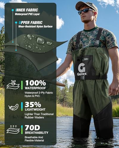 **Gonex Chest Waders for Men and Women – Waterproof 2-Ply PVC Waders for Fishing and Duck Hunting with Boot Hanger**