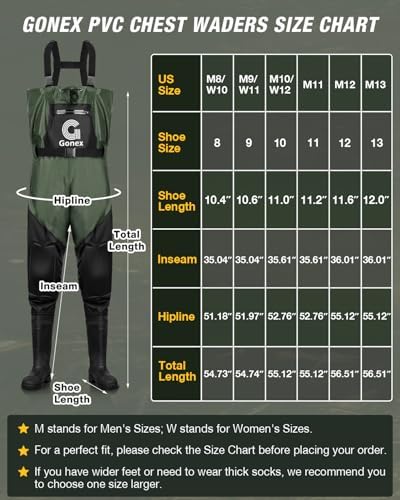 Gonex Chest Waders for Men Women Waterproof 2-Ply PVC Waders for Fishing Duck Hunting with Boot Hanger